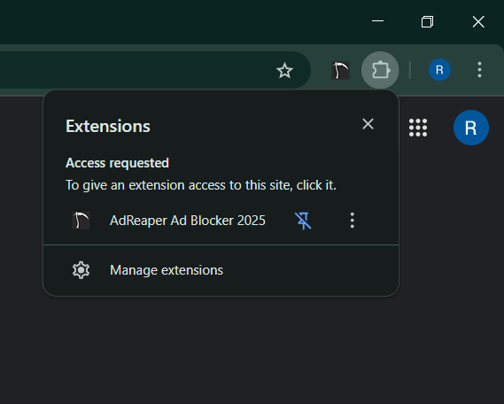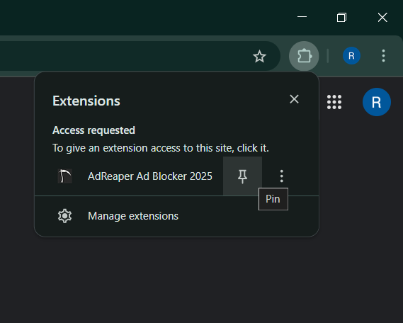 Click on the Pin icon to pin Adreaper to your browser.